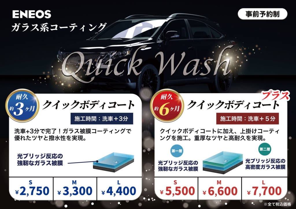 高品質な3層コーティングで、雨や汚れをしっかりガード。深いツヤと強力な撥水効果が長く続きます。大切なお車をいつまでも美しく保ちたい方におすすめです。